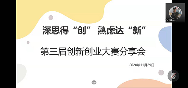 1129日晚,设计艺术学院于腾讯会议成功开展了深思得“创”熟虑达“新”创新创业分享会。此次会议由产品1702唐腾、2020级视传研究生朱杰主讲。2020级新生共54人与分享会。本次会议由创新创业部组织开展学生干部胡川进行主持。