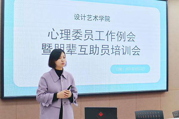 3月23日下午,设计艺术学院于建筑艺术楼C320召开新学期心理委员工作例会暨朋辈互助员培训会。院心理辅导员秦子玲、院心理互助部成员以及18、19级心理委员共30人参与本次会议。
