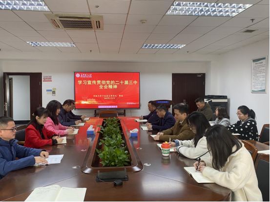 1月2日,实验与资产处党支部书记曹瑛以题为《结合工作实际贯彻落实党的二十届三中全会精神》讲授专题党课,支部全体党员、党员发展对象参加。