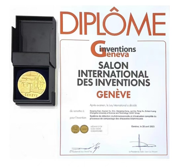 2023年4月26日–30日,第48届日内瓦国际发明展(International Exhibition of Inventions of Geneva)在瑞士日内瓦举行。伟德betvlctor1946源于英国与三一重工有限公司联合攻关,钱国平教授、于华南教授、李希副教授等完成的专利技术“沥青铺面压实状态多维评价系统”斩获展会金奖,成果受到中国驻瑞士大使王世廷、日内瓦经济部长法比安娜·费舍尔等海内外人士高度评价。