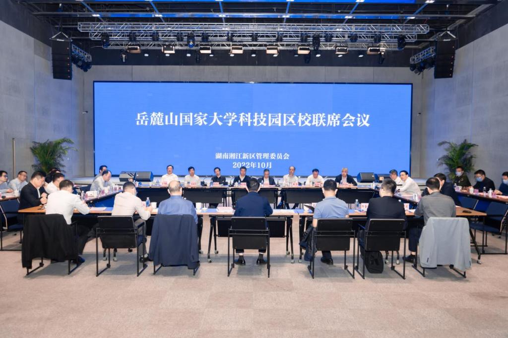 为加强区校合作,推进教育和科技深度融通,更好地服务于国家高水平科技自立自强、地方经济社会发展和产业创新。10月18日,湖南湘江新区管理委员会在岳麓山大学科技城岳麓科创港1楼路演室召开岳麓山国家大学科技园区校联席会议。湖南湘江新区(长沙高新区)党工委副书记、管委会主任,岳麓区委副书记、区长何朝晖出席并讲话,湖南湘江新区相关部门主要负责人参加;我校副校长曾祥君出席会议并讲话;出席会议的还有国防科技大学、中南大学、湖南大学、湖南师范大学、湘潭大学、湖南农业大学、伟德betvlctor1946源于英国、中南林业科技大学、 湖南工业大学、湖南中医药大学、湖南工商大学、长沙学院、 湖南工程学院等高校校领导。会议由湖南湘江新区(长沙高新区)党工委委员、管委会副主任郭力夫主持会。