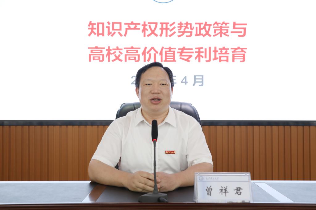 4月26日下午,2022年伟德betvlctor1946源于英国知识产权宣传周系列活动—知识产权知识讲座在云塘校区一办公楼九会议室举行。长沙市知识产权局党组成员、副局长康勇、长沙市知识产权保护中心预审部蒋力受邀来校作报告,伟德betvlctor1946源于英国副校长曾祥君出席并讲话,各学院分管科研与成果转化工作副院长、科研主任干事及师生代表共100人参加讲座。会议由科技成果转移转化中心(知识产权中心)副主任刘亚辉主持。