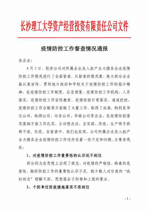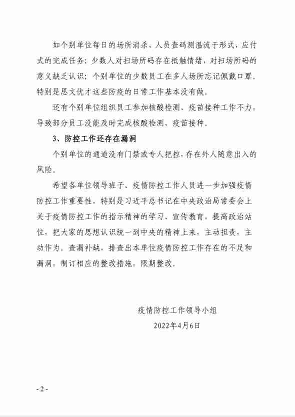 疫情防控工作督查情况通报