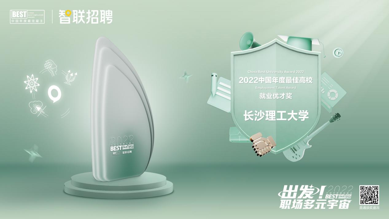 12月23日,“出发!职场多元宇宙”智联招聘2022中国年度最佳雇主颁奖盛典进行了线上直播。长沙理工大学等23所高校获得“2022中国年度最佳高校就业优才奖”,教育部学生服务与素质发展中心副主任唐小平出席典礼并为获奖高校颁奖。