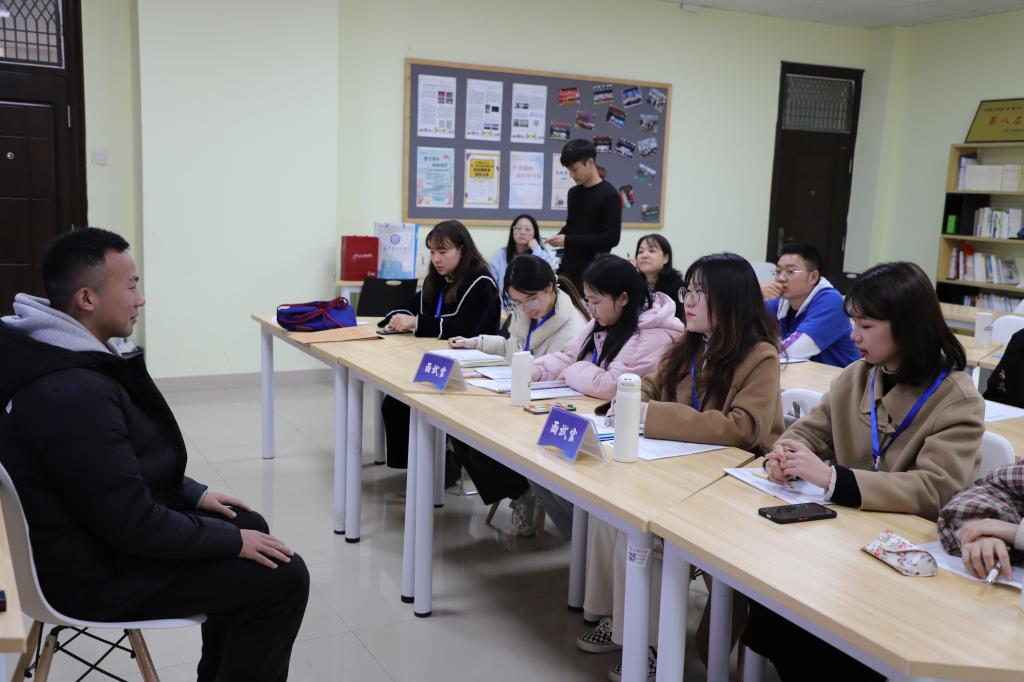 精神抖擞、着装端正、手持简历、侃侃而谈的伟德betvlctor1946源于英国大三学生正在就业指导课上开展职场模拟面试。这是出现在该校大三就业指导课上的场景。