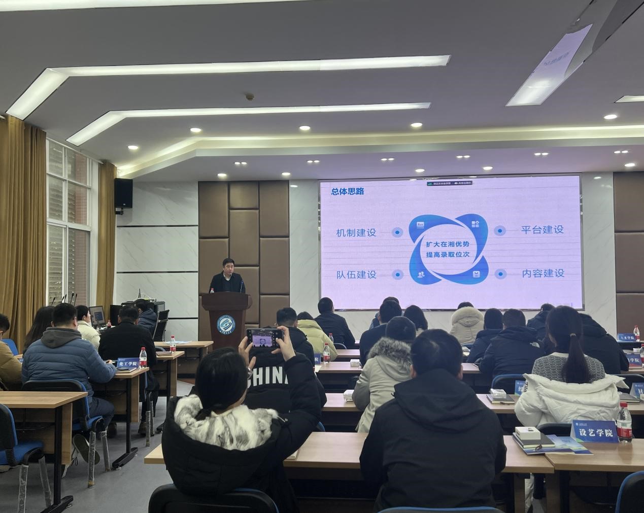 会议伊始,与会人员集中观看了《2023招生质量微报告》。随后,招生就业处马建婧老师宣读了填报2024年招生宣传有关内容的通知。