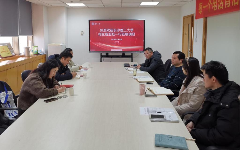 为进一步提高学校招生工作水平和招生宣传工作实效,2023年12月以来,校招生就业处本科招生管理科一行3人在副处长田上带领下,先后前往部分“双一流”高校开展招生工作专题学习调研,深入了解上述高校在招生信息管理、招生宣传体系构建、宣传队伍建设、考核机制建设以及新高考模式下招生对策等方面的有效做法与成功经验。